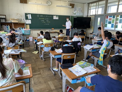 庄内平野の米作りについて学習をしています。グラフから米の生産量や年間耕作時間の移り変わり、一年間の費用などについて考えました。苦労も多く大変な米作りですが、農家が協力をしてかかる費用を減らすなどの工夫をしていることがわかりました。グラフを読み取る力も大切な学力です。