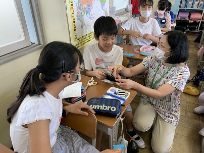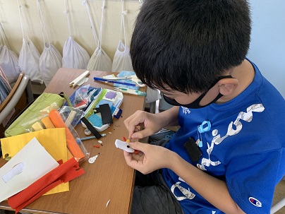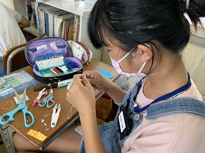 家庭科で小物作りを行いました。鉛筆カバーやティッシュ入れを作っています。みんな集中して取り組んでいます。