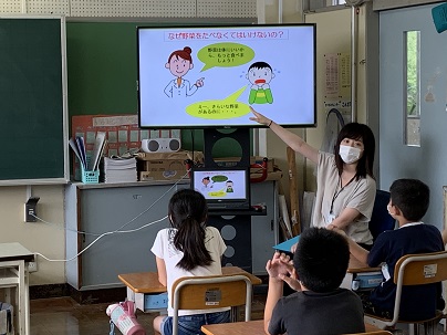 授業の前半は養護教諭の瀧塚先生、後半は栄養教諭の斎藤七海先生が担当しました。