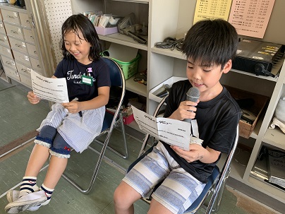 総務委員会主催のクラスインタビューが、今日の給食から始まりました。各学級のことをみんなに知ってもらって、児童会目標である「ワンチーム」になることを目指します。トップバッターは3年生です。3年生の代表の子も緊張しながらも、堂々と上手にお話をしてくれました。思い出の曲や遊び、担任の中村先生のことなど、しっかりとお話をしてくれました。学級の様子がよくわかりましたよ。