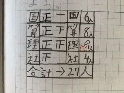 人数を調べるには「正」の字を書くと便利ということを知りました。