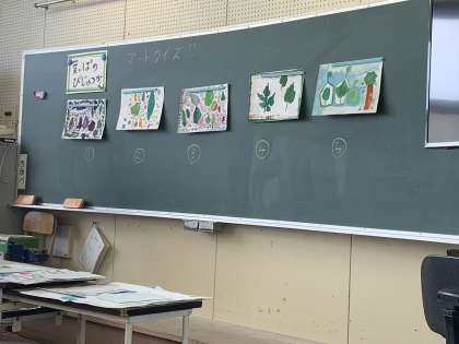 3限の図工の時間に、葉っぱの絵の作品の鑑賞をしました。