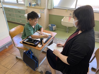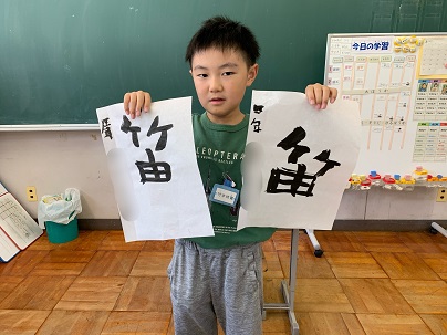 8月26日(水) 教頭先生と一緒に「笛」の毛筆練習をしました。集中して頑張って練習をしました。