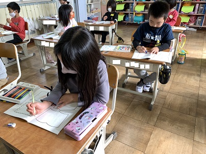 好きなものを見つけて、絵や言葉で書いています。
