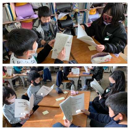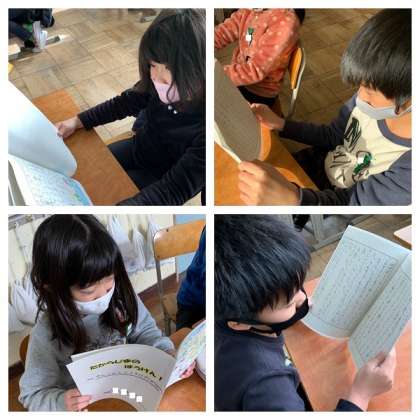 今日は完成した作品をみんなで読み合っています。