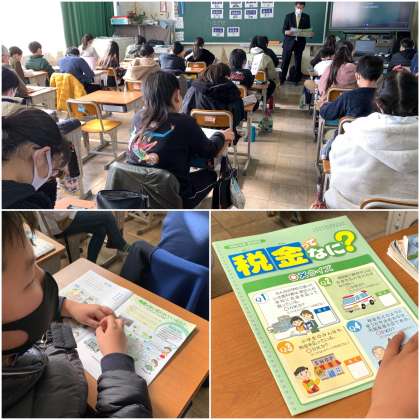 租税教室 公開日 2021/01/21 更新日 2021/01/21 6 年 1月21日(木) 税理士さんにお越しいただき、6年生が租税教室を行いました。 納税は国民の義務です。そして、私たちの暮らしを守り、国や地方を支えためにはなくてはならない大切な税金です。子どもたちにとって、まだまだ税金は遠い存在かもしれません。しかし将来、一人一人が国民として国を支える子どもたちには、税金の大切さや役割をしっかり理解していってほしいと思います。