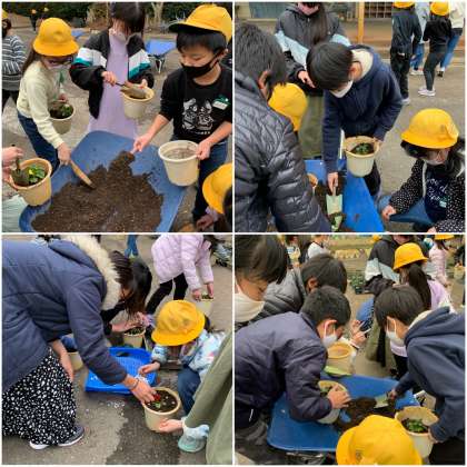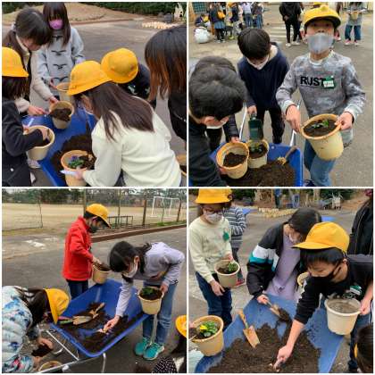 3,5年生ペアも頑張って一人一鉢準備しました。早い子は2つ、3つ作ってくれた子もいます。お世話もよろしくお願いしますね!