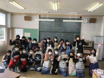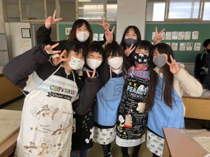 エプロン完成への道 公開日 2021/02/04 更新日 2021/02/04 5 年 できたエプロンを着て、みんな大満足!全員がここまで出来上がりました!みんなとってもいい笑顔だね! 次回はエプロンにポケットをつけます。