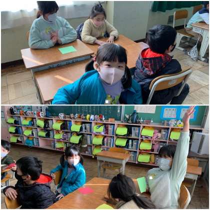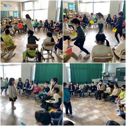 最後に、4色から自分の色を決めて、色のフルーツバスケットもしました。英語の勉強は楽しいね!