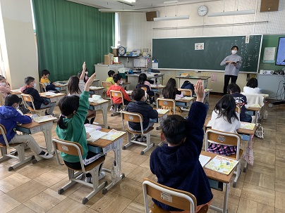 先日は、生活科でできるようになったことをたくさん見つけた1年生。今日の国語では、1年生になってどんないいことがあったか、詳しく思い出して発表をします。友達の発表を聞くことで、いいことがたくさんあったことを思い出す子もいます。友達の意見をしっかり聞くこともとても大切です。