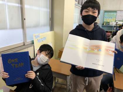 卒業アルバムが届きました! 公開日 2021/03/16 更新日 2021/03/16 6 年 3月16日(火) 卒業アルバムが届きました。アルバムを手ににっこり!6年間の大切な思い出の詰まったアルバムです。大切にしてくださいね。 そしてさっそく、職員室で先生たちからのメッセージをもらう6年生の皆さんです。