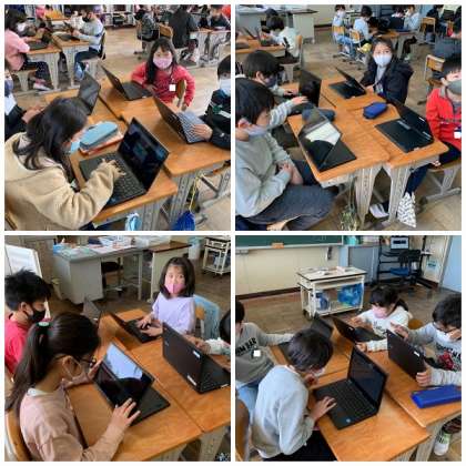 国語の時間にわたしたちの学校の自慢についてグループで発表します。