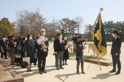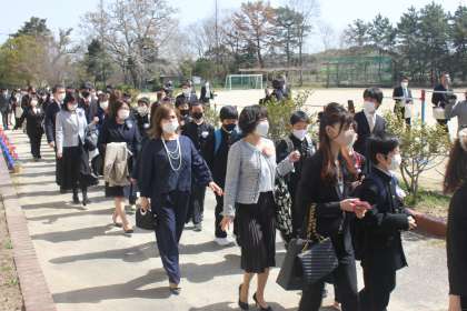 来年度の前期児童会長さんを先頭に見送り式のスタートです。
