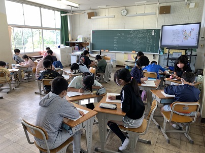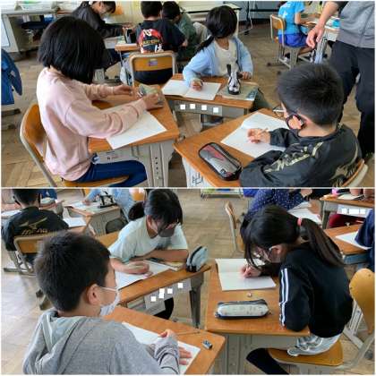 聞き手と話し手、記録者に別れて、友達に質問をして答える学習をします。どんな質問をしようか各自で考えています。友達の新たな一面を見つけることができるといいですね。