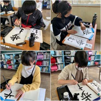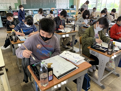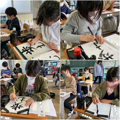 6年になって初めての毛筆の授業です。静かに集中して練習に取り組んでいます。さすがは6年生です。