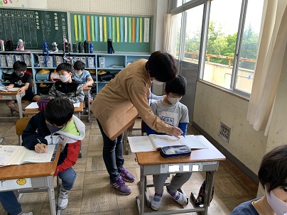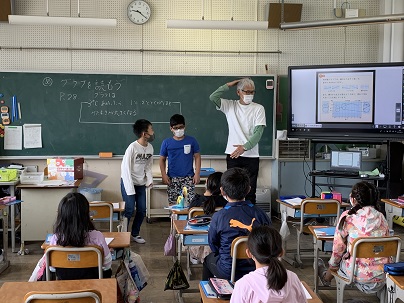 折れ線グラフの傾き具合で変わり方がわかります。頭の位置を折れ線グラフの点の位置として、身長を例に確かめています。線の傾きが急なところほど変わり方が大きいことも森川先生との比較でよくわかります。