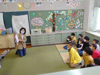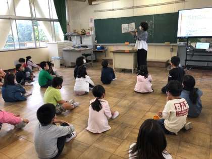 本年度第1回目の保護者ボランティアの皆さんによる読み聞かせを行いました。子どもたちは、読み聞かせにじっと聞き入っています。