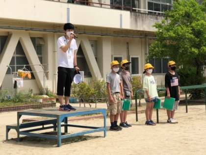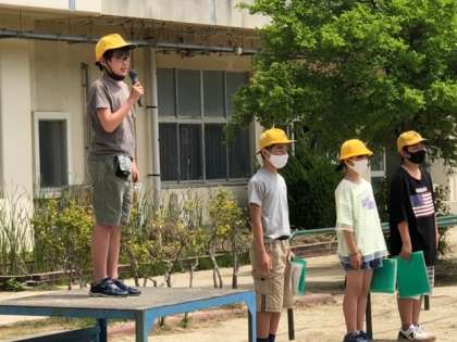 いよいよふれあい遠足に出発です。まずは、総務委員会のみなさんによる出発式です。