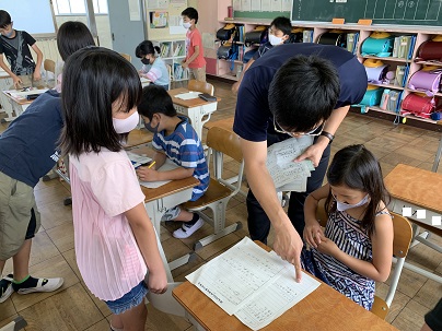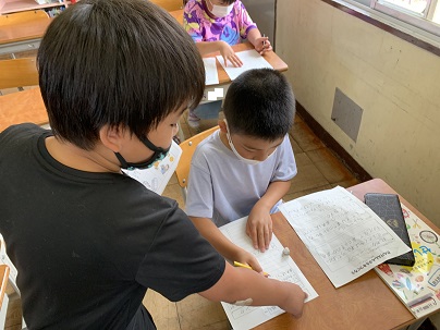 まちたんけんで分かったことを各自でまとめとして新聞作りをしています。新たな発見や驚いたことなどについて記入しています。