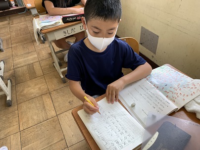 これらのことが入るように紹介文を構成していきます。あらすじでどんな出来事を書けばよいのか、悩んでいる子もいます。どんな出来事があったか思い返しています。教科書を読み返すことも大切です。