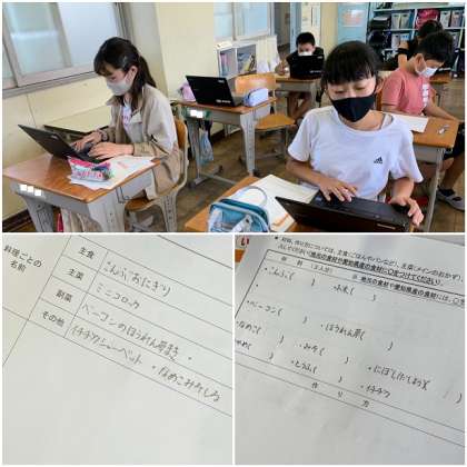 6年生のみなさんが、テーマに沿った朝ごはんを考えています。ぜひご家庭でも話題にしていただき、愛でああふれる朝ごはんについて考えてみてはいかがでしょうか。