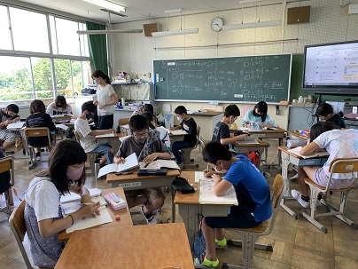 学校評議員の皆さんから、落ちついた雰囲気で、集中して学習に取り組んでいて素晴らしいですね!とお褒めの言葉をいただきました。