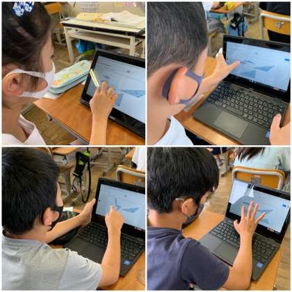 これまでの学習なら、三角形を紙から切り取り、三角形を3つに分ける作業をして、3つの角を合わせて180度になるという確認をしていました。