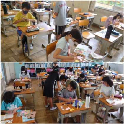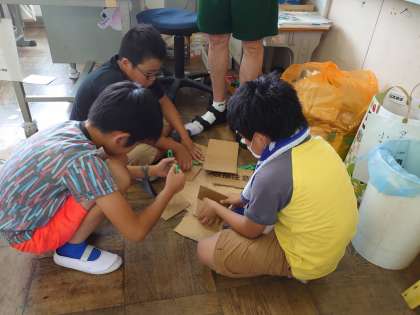 フリーマーケットに向けて 公開日 2021/07/09 更新日 2021/07/09 4 年 ? 7月9日(金) 来週のフリーマーケットの準備をしています。みんなとても楽しそうです。環境学習の総まとめになることを期待しています!