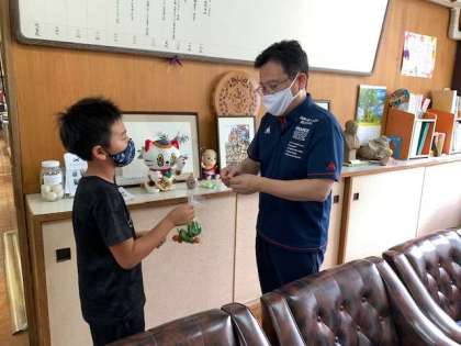 すずらんやおやさん! 公開日 2021/07/16 更新日 2021/07/16 校長室 7月16日(金) すずらんやおやさんが、校長室まで来てくれました。 「すずらんの畑でとれた野菜です。どうぞ!」 お金を渡すと、 「ありがとう!」 お礼もきちんと言えました。 そして、もう一言。 「おいしい野菜だよ!」 にっこりと微笑みながら、教えてくれました。 食べるのがとっても楽しみです!