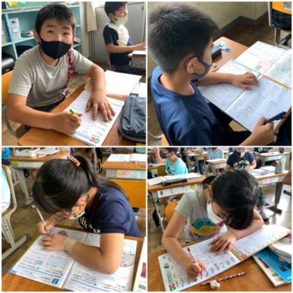 1学期のまとめ 公開日 2021/07/16 更新日 2021/07/16 4 年 7月16日(金) 1学期も残りわずかとなりました。国語や算数のドリルや教科書の問題を各自で取り組んでいます。1学期の学習をしっかり振り返り、まとめをしましょう! みんながんばれ!