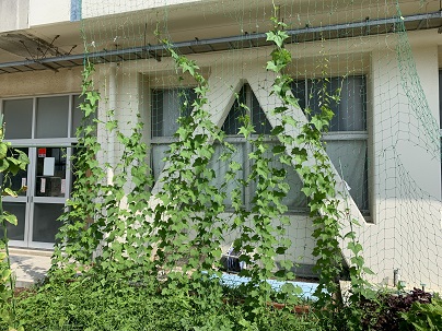 へちま 公開日 2021/07/26 更新日 2021/07/26 4 年 7月26日(月) 4年生のヘチマです。苗の植え直しをして、成長が遅れていましたが、大きくなってきました。花も咲き始めました。大きなヘチマが実るのはいつでしょうね。