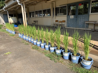 8月に入りました。5年生の稲もどんどん生長し、穂が出てきました。花が咲いているのも確認できますよ。稲にとっては、これからの日照が実りの出来不出来に関わってくるそうです。