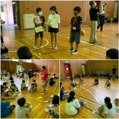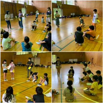 3校合同でグループに分かれてゲームをしています。まだ恥ずかしさがあるかな?