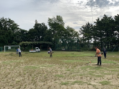 本年度第1回目の学校応援団作業を行いました。応援団の皆様には、早朝より作業に取り組んでいただきました。今回は、グラウンド内とその周辺の除草作業と学校周辺の除草作業を行いました。グラウンドに生えていた大きな雑草がなくなり、とてもすっきりとしました。