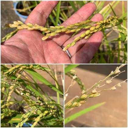 なんと実っているはずのお米のない穂がいくつかあるのに気がつきました。どうやら鳥などの動物が食べているようです。しばらく様子をしっかり見ていきたいと思います。