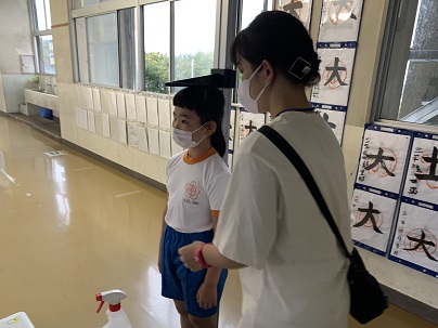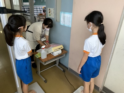9月3日(金) 教室で感染予防についてお話を聞き、ろうかで身体測定をしました。 みんなどれくらい大きくなったかな?