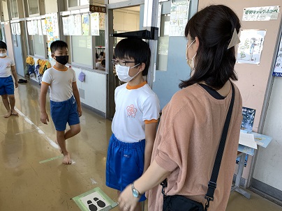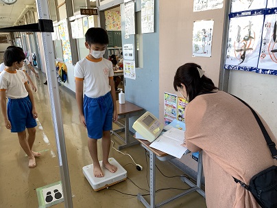 身体測定と新型コロナウイルス感染症対策についての指導を行いました。4月の測定と比べると、ずいぶん大きくなっている子もいます。