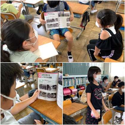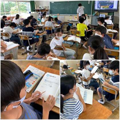 4年社会科「自然災害から人びとを守る活動」、5年理科「台風に備えて」の授業です。5時間目の授業で、教科は異なりますが、自然災害をテーマにした授業を行っていました。2011年に発生した東日本大震災を受け、様々な教科で自然災害についての内容が取り上げられています。