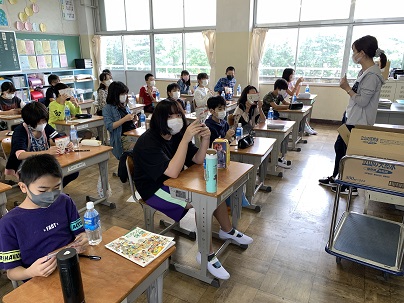 今日の給食は、学校で備蓄している非常食のカレーを食べます。お米が水を吸収するのに1時間程度必要となるため、各学年ともに3時間目の最初にお米の準備をしました。