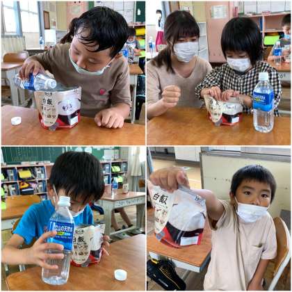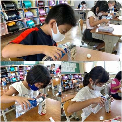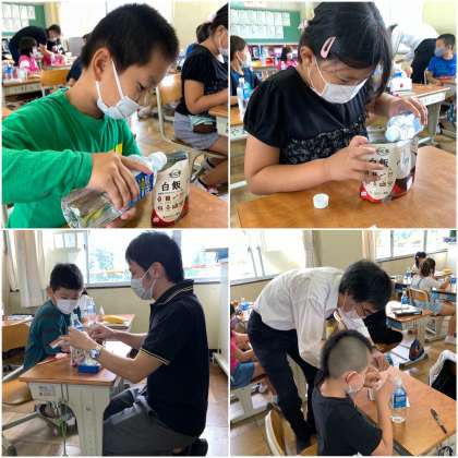 1,2年生とも初めての体験です。こぼさないように気を付けて!