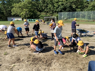 今日は朝読書のかわりに、運動場の草取りをしました。運動会に向けて、雑草のない運動場にしていこう!