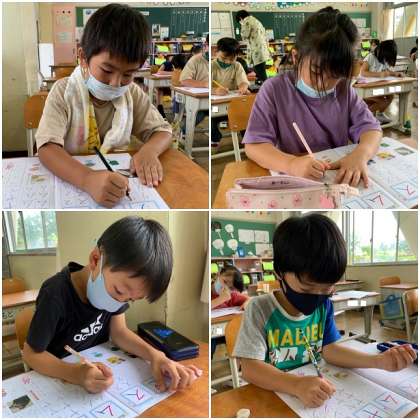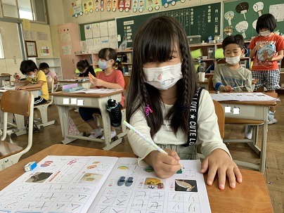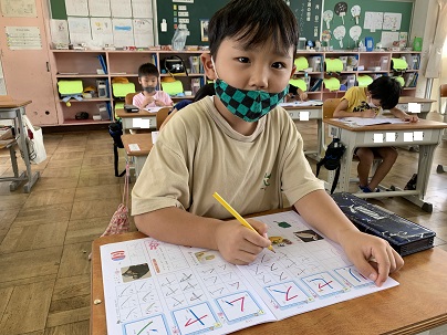 カタカナの練習をしました。姿勢にも気を付けています。