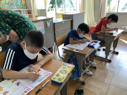 線にあわせて丁寧に書いて練習をしています。