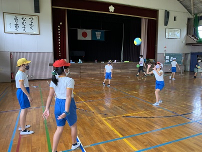 ソフトバレーボールに取り組んでいます。バレーボールの難しいところは、パスがなかなかつながらないところです。ワンバウンドOK、キャッチしてパスなどルールにも工夫があります。