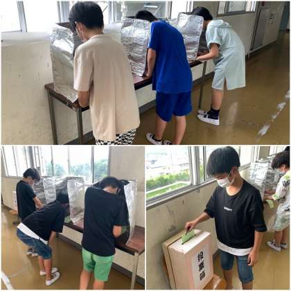 候補者の演説前とあとには、温かく盛大な拍手が教室から聞こえてきました。演説終了後に、教室前に設置された投票所で投票を行いました。選挙結果は、金曜日に発表します。