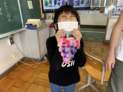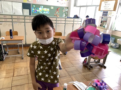 図工の時間にぶどうを作りました。本物のぶどうの様子も確認して、作りました。みんなの作ったぶどうを見ていたら、本当にぶどうが食べたくなってきましたよ!