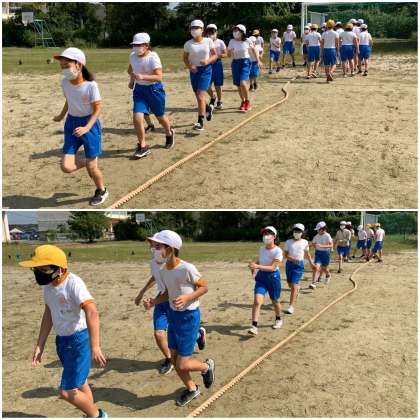 高学年の綱引き練習を2時間目に行いました。6年生にとっては、小学校最後の運動会です。