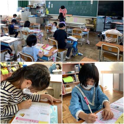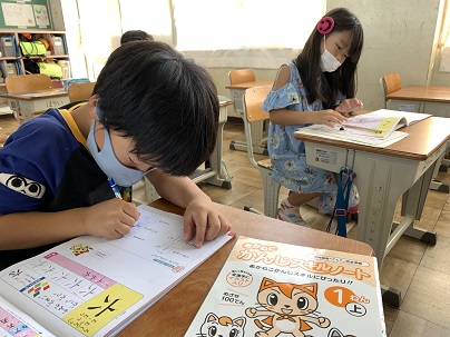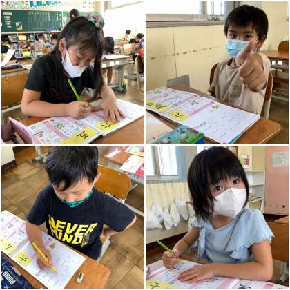 今日は、五,六,七の漢字練習をしました。