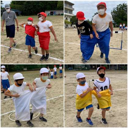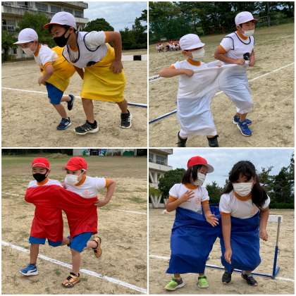 2・4年ペア種目はデカパンダッシュ!です。4年生にとっては、高学年として初めて参加する運動会です。高学年として、しっかりと2年生をリードしてくださいね。