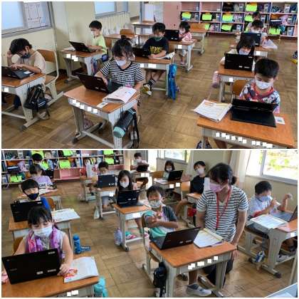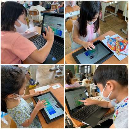 県独自の厳重警戒措置のため、引き続き音楽の授業では鍵盤ハーモニカの演奏はできません。chromebookを使って鍵盤の練習をしています。